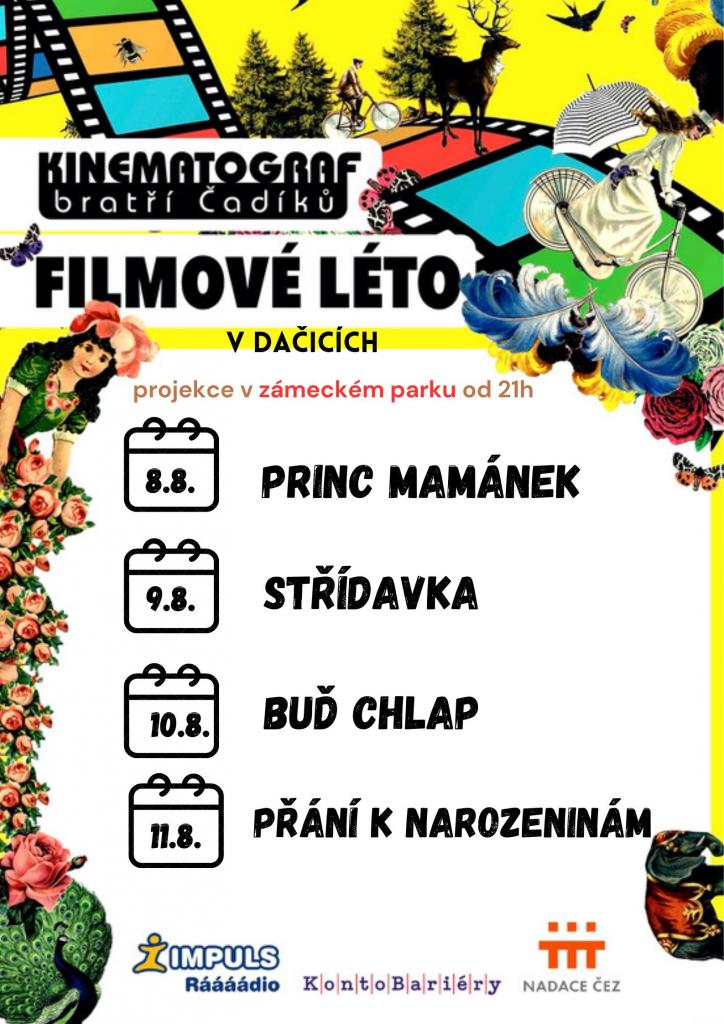 Kinematograf bratří Čadíků promítá od 8. do 11. 8. 2023 vždy od 21:00 h. Vstupné je dobrovolné!