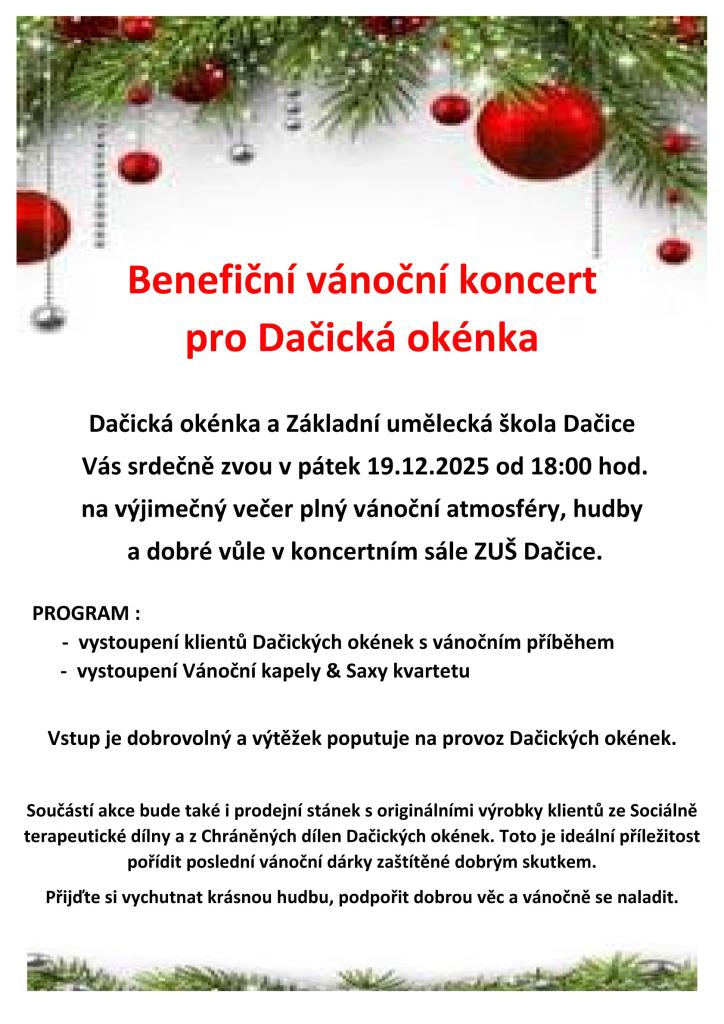 Účinkují: Dačické okénko, Vánoční kapela a Saxy kvartet