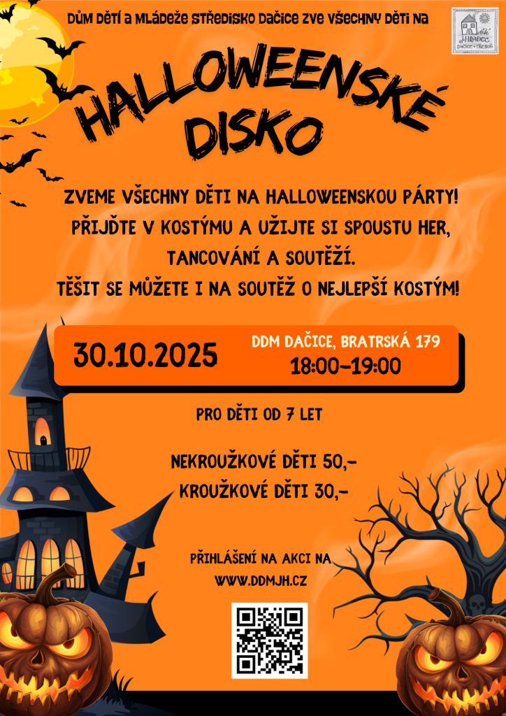Halloweenská párty v kostýmech. Tanec a zábava. Je nutné se předem přihlásit.